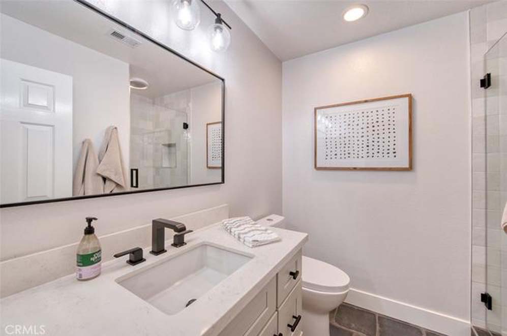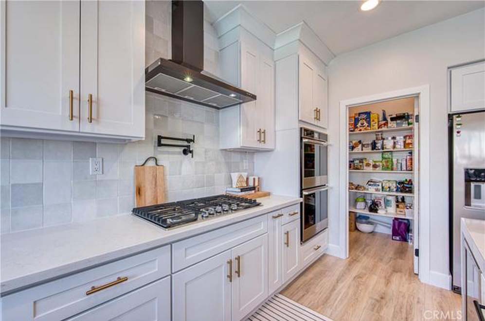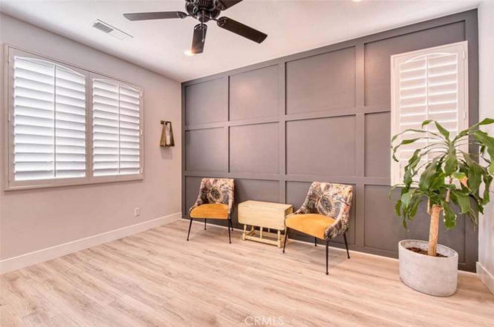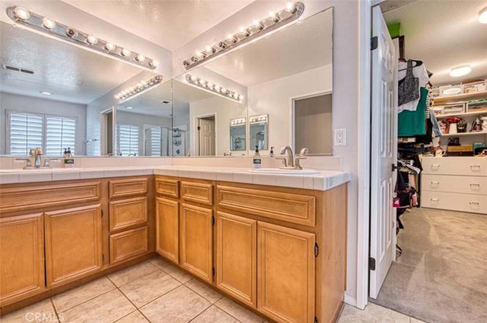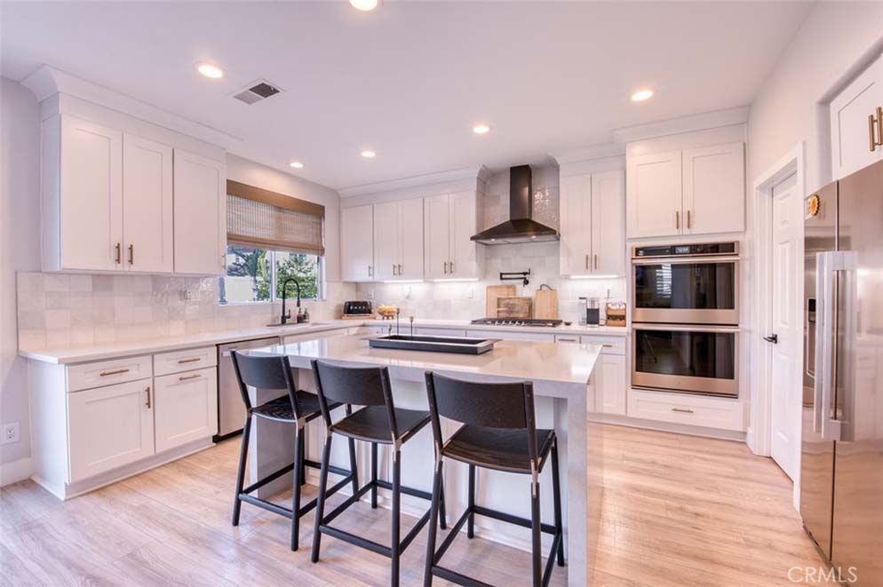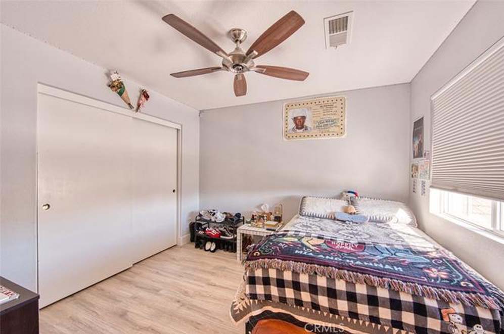 MOVE-IN READY EASTVALE HOME! Gorgeous two-story home offering 2,253 square feet of living space, featuring 4 bedrooms and 3 full bathrooms, thoughtfully designed for comfort and functionality. The entry welcomes you with a downstairs bedroom and full bathroom with walk-in shower, ideal for guests or multigenerational living. Across the hall is a versatile flex room, perfect as a den, home office, or playroom. Enjoy an open-concept floor plan enhanced by wood grained water-resistant vinyl flooring throughout the main living areas. The spacious family room features a cozy fireplace and flows seamlessly into the dining area and stunning, fully updated kitchen. The chef’s kitchen boasts stainless steel appliances, double ovens, a 5-burner cooktop with range hood, wall-mounted pot filler, quartz countertops with matching backsplash, stylish cabinetry, a large island with Silestone countertop, and a walk-in pantry. Refrigerator and beverage refrigerator are included. Additional highlights include plantation shutters, abundant recessed lighting, and a whole house water softener system for enhanced comfort and appliance longevity. Upstairs, the primary suite offers a relaxing retreat with dual sinks, a soaking tub, separate shower, and a walk-in closet with built-in organizers. A hall bathroom with dual sinks and two additional bedrooms complete the upper level. The 2-car garage features custom built-in cabinetry for excellent storage. Energy efficiency is enhanced with a solar power system. Step outside to a spacious backyard with artificial turf and attractive landscaping, perfect for entertaining or low-maintenance outdoor living. The home is conveniently located within walking distance to Harada Elementary School and Harada Heritage Park, and just minutes from shopping, dining, and entertainment.